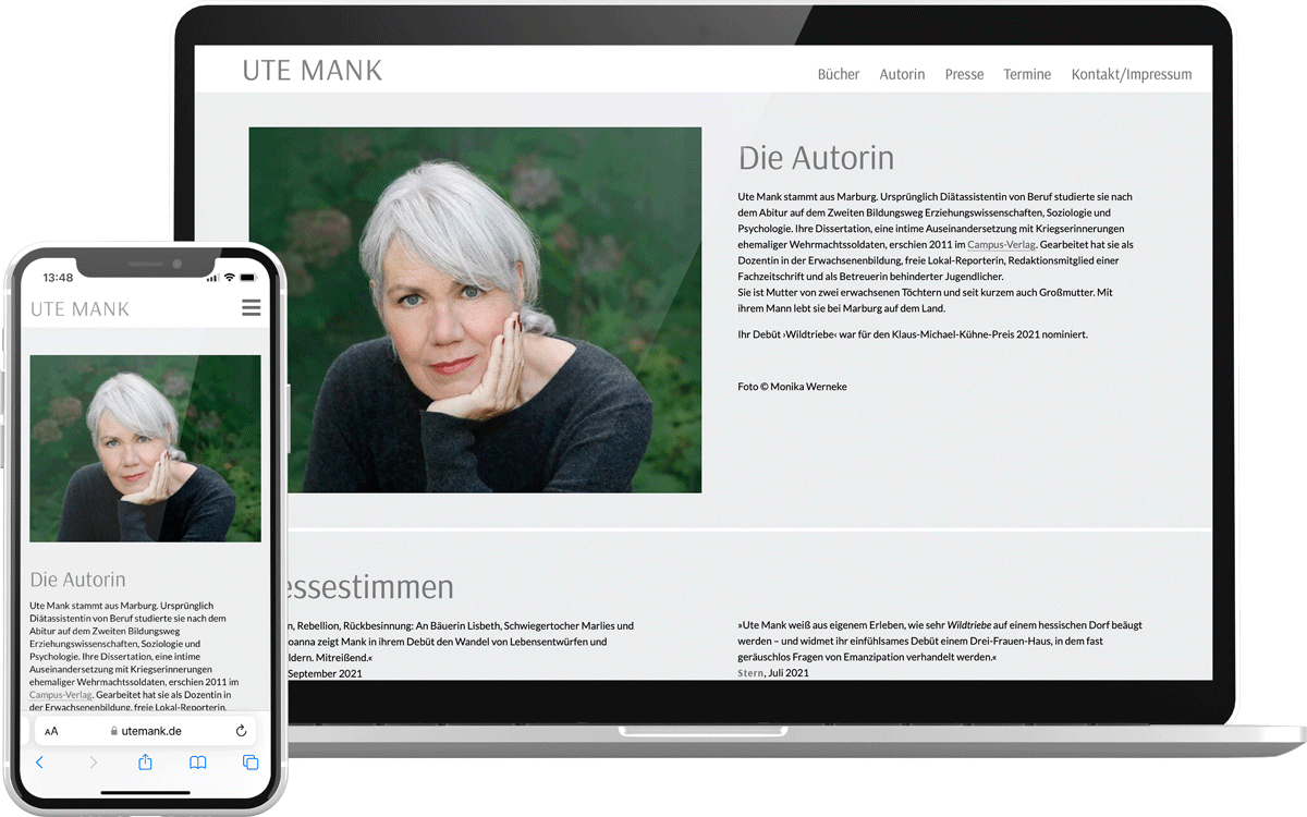 Website für die Autorin Ute Mank